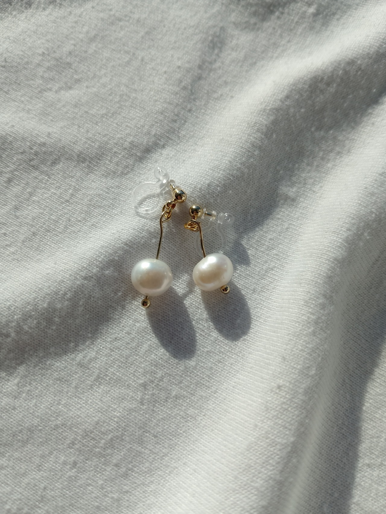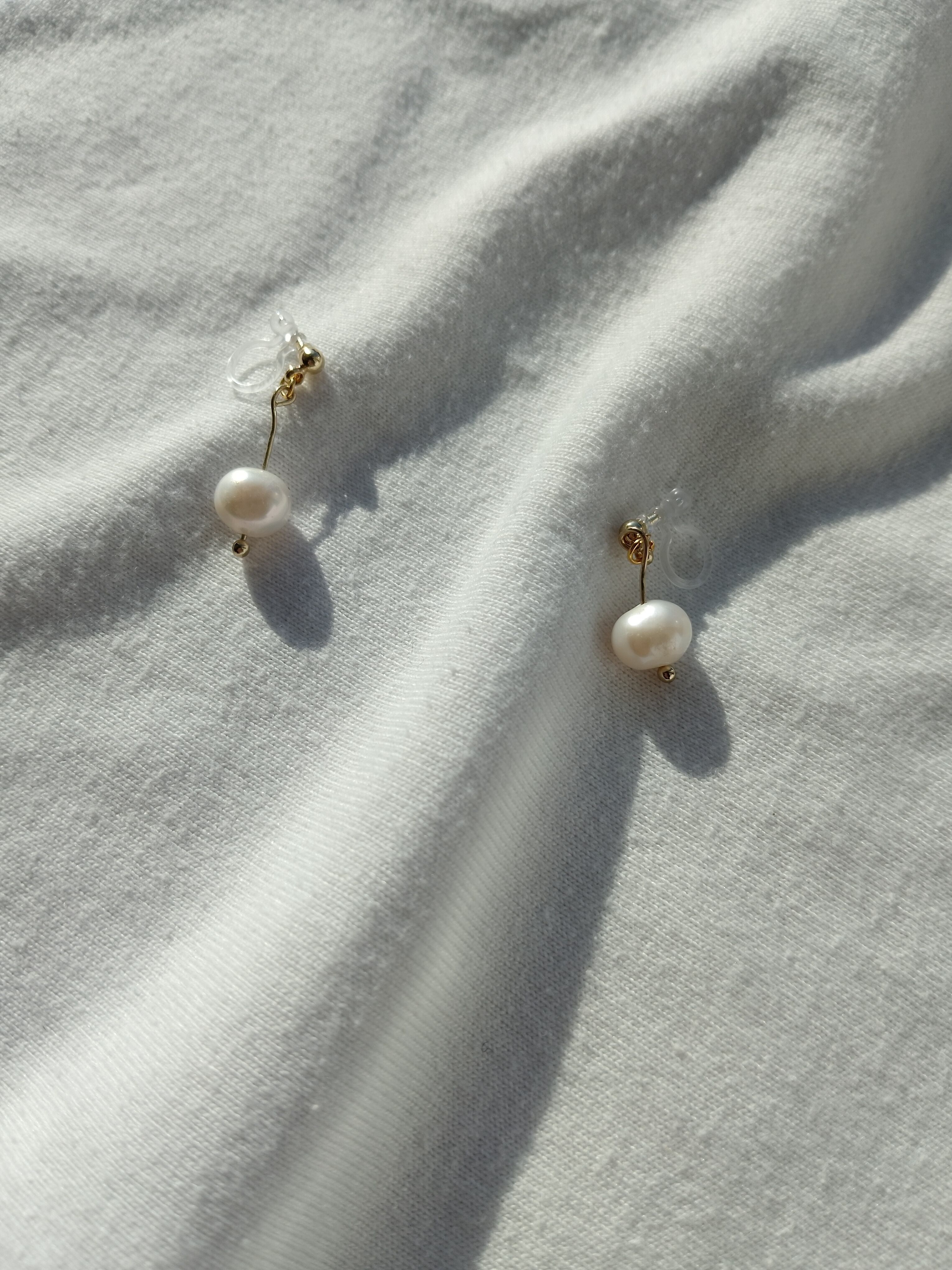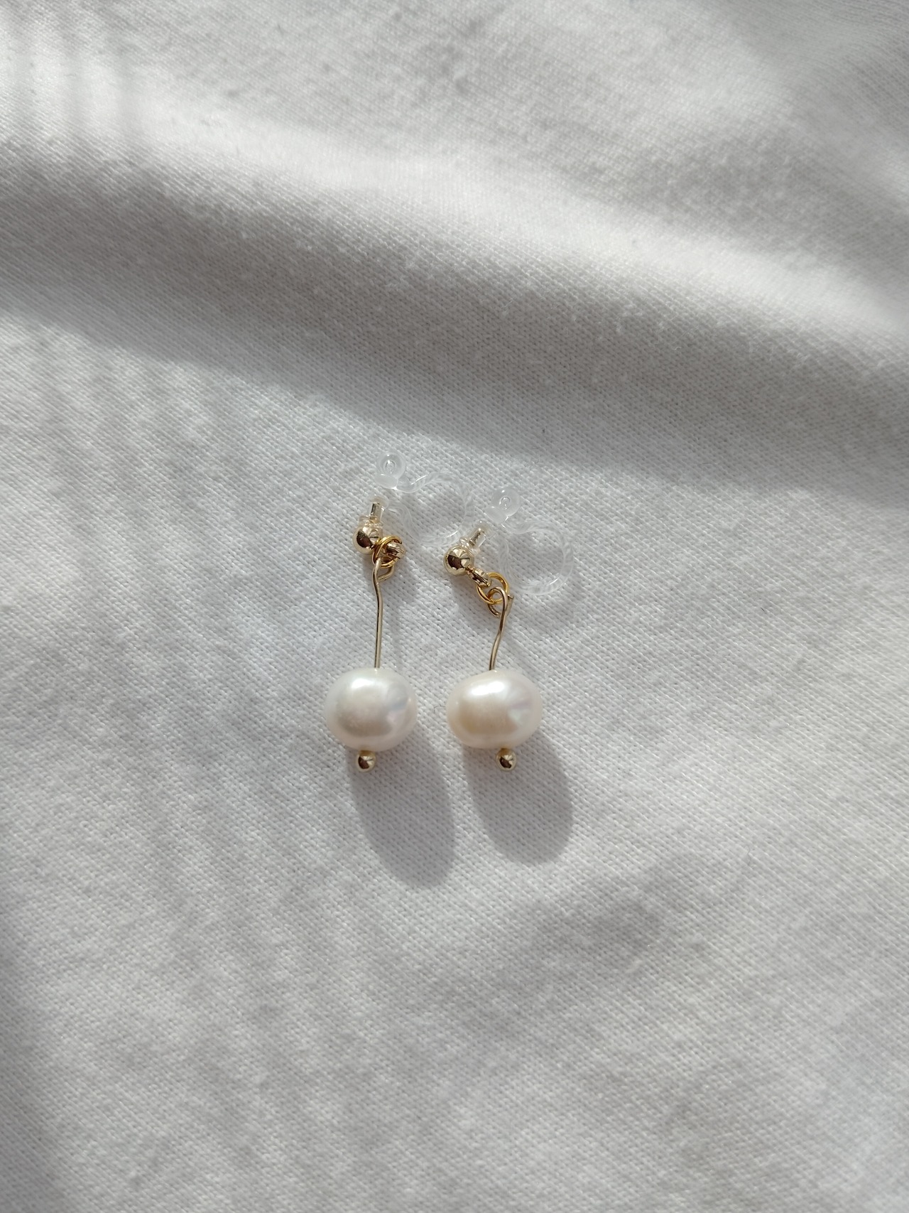 小さなパールが耳元でそっと揺れる、