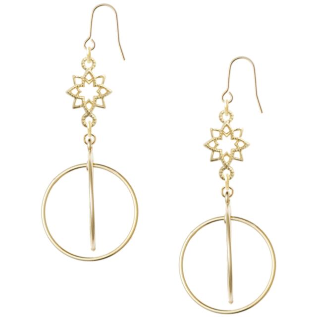 シンプルなゴールドの透かしデザインのパーツとフープを合わせました。 フープはダブルになっていて付けると交差したデザインになります。