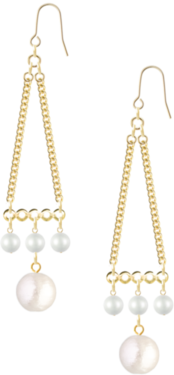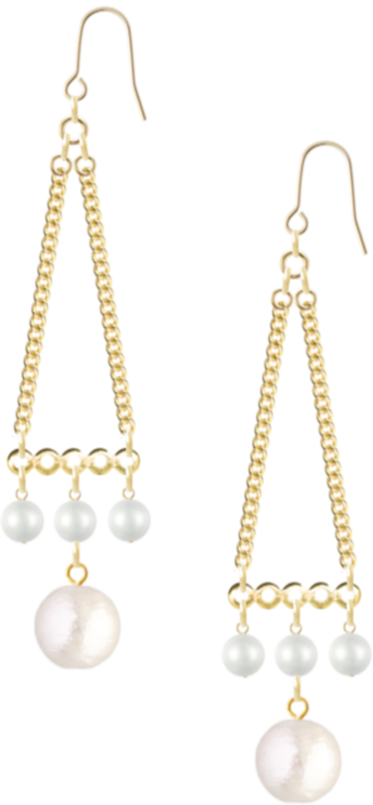 三角のチェーンの下に小ぶりのパールのと大ぶりのパールをつけてふるふるとした揺れの違いを楽しめるピアスです。
