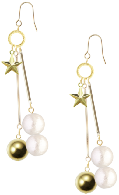 ゴールドのチャームとパールの二連チャームをさげ、アクセントにスターのチャームを合わせました。 ゴールドとパールのホワイトが良くマッチして高級感があります。 ホワイト、ブラウン、ベージュ、ゴールド系の色味のファッションに合います。 #ゴールド #スター #パール #チェーン