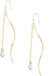 スワロフスキークリスタルをチェーンで垂らし、その後ろにウェーブのバーを重ねることで、不揃いで美しい光を放つピアスになりました。