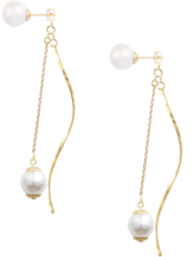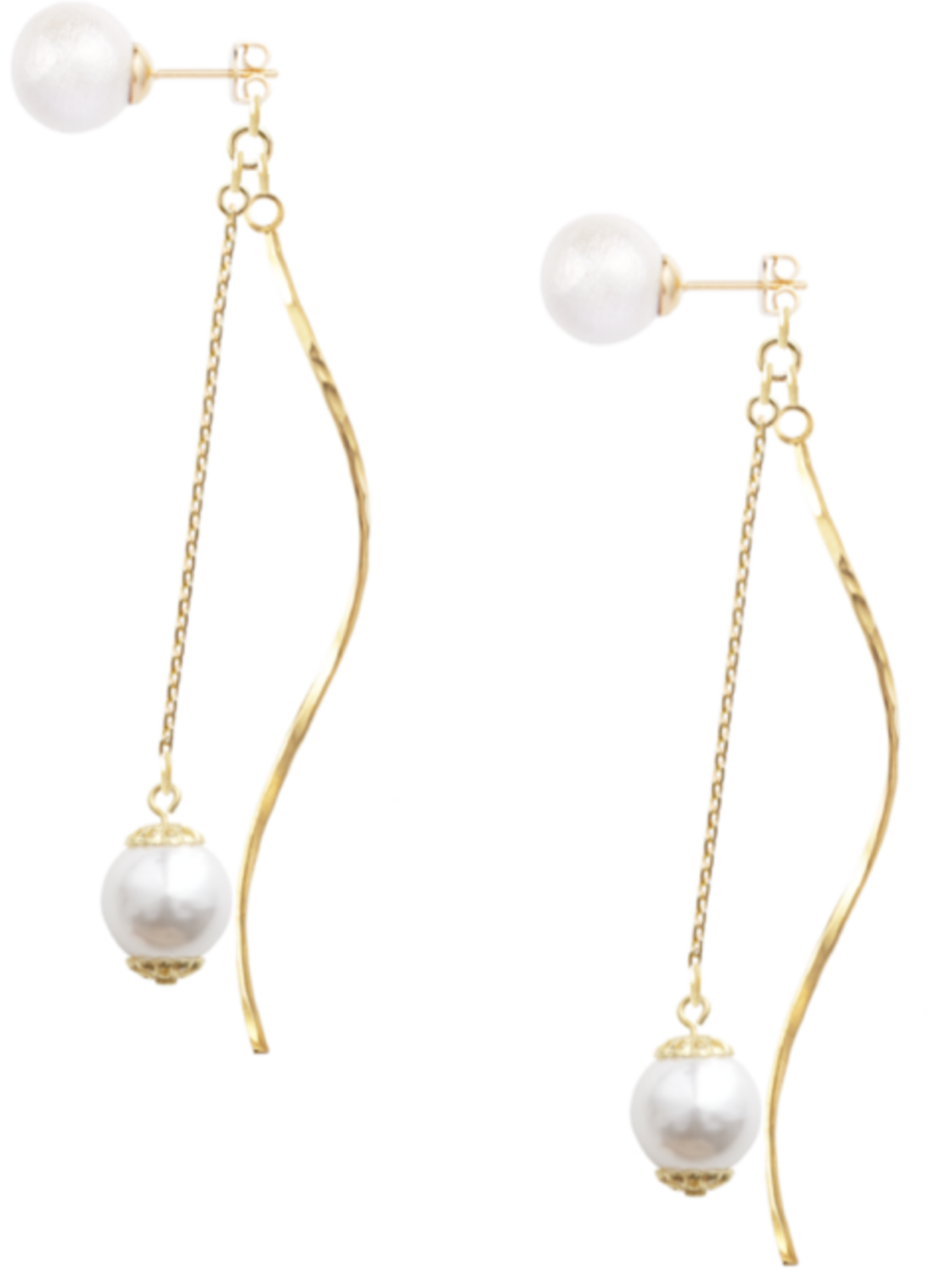 コットンパールのピアスのキャッチに、ゴールドのバーとチェーンをつけ、さらにもう一つパールを繋げました。